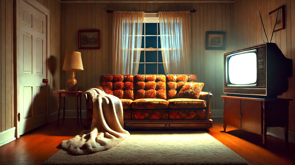 There’s a memory so specific, yet so universally shared among kids of the 80s and 90s that it feels almost eerie in its consistency. You wake up in the middle of the night, confused, disoriented, the glow of the television flickering across the room. The world outside the window is still, silent, and yet, in this moment, something feels… off. You’re on that unmistakable couch, the one with thick, floral-patterned cushions in deep oranges and browns, with wooden armrests and a solid, built-to-last frame that made its home in every grandparent’s living room. The room smells faintly of whatever was for dinner, mixed with old upholstery and that strange, warm, vaguely musty scent that somehow only exists in houses that have been lived in for decades.