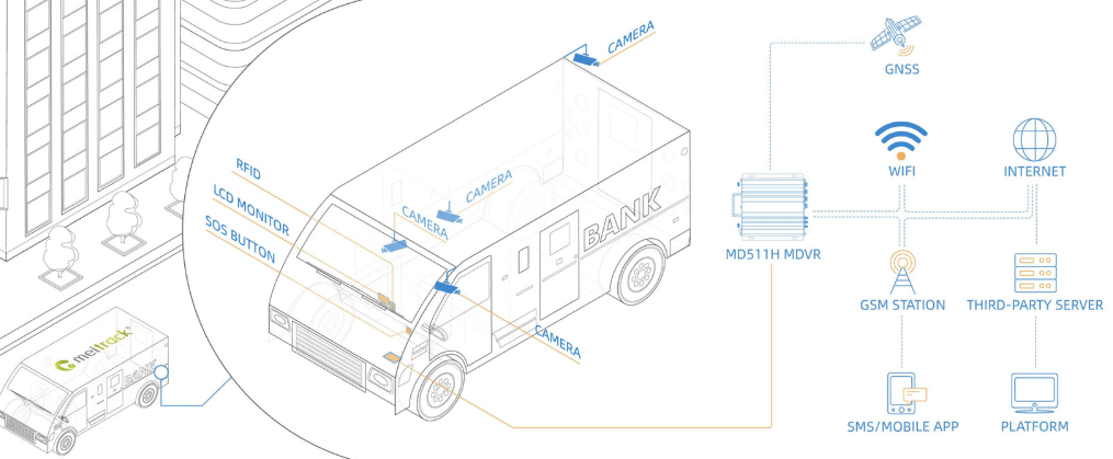 - Bullet resistant glass and heavy armor plating that can shrug off small arms fire.